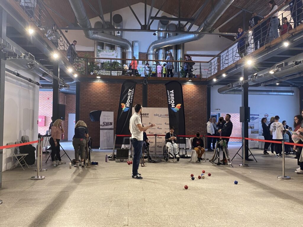 During the Hobby festival in Thessaloniki, AETOI showcased boccia and the ramps4champs project as an inclusive sport. The 30-minute presentation began with a 5-minute introduction to the sport and its history. This was followed by a 10-minute live demonstration. The final 15 minutes featured matches involving audience members. The boccia showcase was strategically located at the festival’s entrance, ensuring that attendees spent at least 10 minutes observing the game. The presentation piqued interest, with many posing questions and seeking additional information afterward.